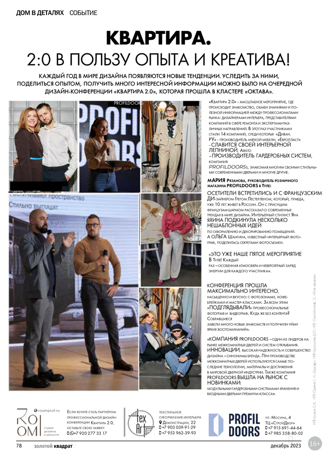 Также Мария Рязанова, руководитель розничного магазина PROFILDOORS в Туле, оставила комментарий для рекламного издания «Золотой квадрат»!